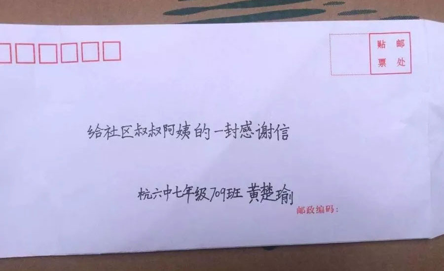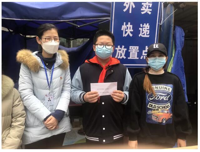 社区是疫情联防联控的第一线,也是外防输入、内防扩散最有效的防线。把社区这道防线守住,就能有效切断疫情扩 散蔓延的渠道。在抗击新型冠状病毒感染的肺炎疫情的过程中,社区工作人员在疫情面前绝不退缩,不辞辛劳,加班加点地工作,他们为社区居民护航,竭尽全力保卫着辖区 居民的生命健康。他们看似微小的点滴行动,却深深地感动了社区的每一位居民,这其中也包括一位13岁的孩子——CTVE学生:杭州第六中学709班的黄楚瑜同学。在抗击疫 情期间,社区叔叔阿姨们的辛苦,黄楚瑜同学看在眼里,感动在心里。他决心一定要为这群默默付出的叔叔阿姨送去自己的一份关心,向他们道一声感谢!和妈妈商量后,他 用自己的压岁钱,买来了口罩、牛奶和矿泉水。2月12日中午,和妈妈一起,把这份爱心以及一封感谢信送到了社区叔叔阿姨们的手中。他代表杭六中全体师生表达了对默默 守护人民生命健康的社区工作者的感谢。